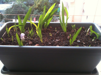 Apesar de os últimos dias estarem a ser um frenesim constante, a natureza segue o seu curso com toda a calma. E esta manhã ela deu-nos uma surpresa. Há umas semanas arranjei com os miúdos dois vasos, onde plantámos algumas flores, para colocar no beiral da nossa cozinha (a nossa única possibilidade de jardim). E hoje estava lá isto: