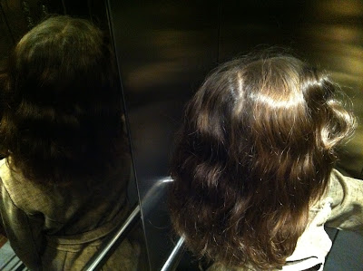 Não sobre elevadores, mas sobre cabelos. Fui com a Carolina ao cabeleireiro. À entrada falámos sobre pontas espigadas, quantos dedos cortar sem comprometer o seu crescimento (ela quer ficar com o cabelo muito comprido), e sobre as madeixas douradas que algumas das suas colegas de escola já fazem, com resultados que ela aprova muitíssimo. À saída falámos sobre o facto de o seu cabelo estar a ganhar uma nova ondulação, que a está a satisfazer bastante, e sobre a necessidade de continuar a afastá-lo para os lados com as pontas dos dedos, de forma a conseguir que os cabelos da frente se desviem automaticamente dos olhos após a secagem. Esse movimento permitir-lhe-ia, no seu entender e no entender do seu cabeleireiro, prescindir dos ganchos, que ela não aprecia particularmente.