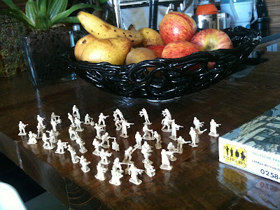 À tarde é que foram elas! Ele pediu-me para dizer à fadinha dos dentes que queria uns mini-soldadinhos da Segunda Guerra Mundial em troca do dente. O Tomás é o miúdo mais pacífico do mundo, mas adora fazer lutas e guerras com mini-soldadinhos desde que descobriu que esta era a brincadeira favorita do pai quando era pequeno. Como o João tinha ido para o Porto, eu não podia sair à noite para os procurar, e por isso tive de enfrentar umas filas de trânsito gigantes ao fim da tarde para conseguir ir ao Corte Inglès à procura deles na secção de modelismo.